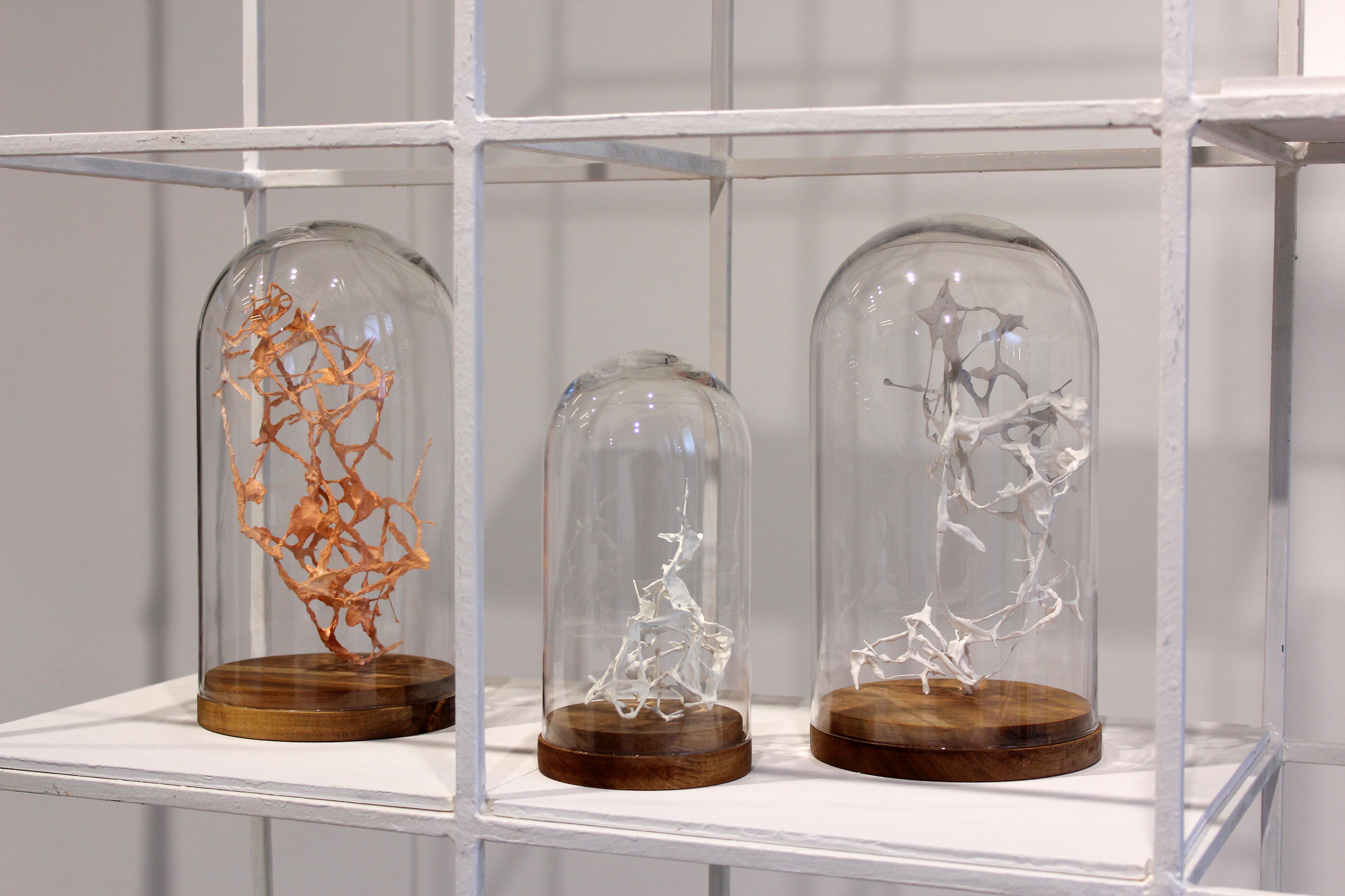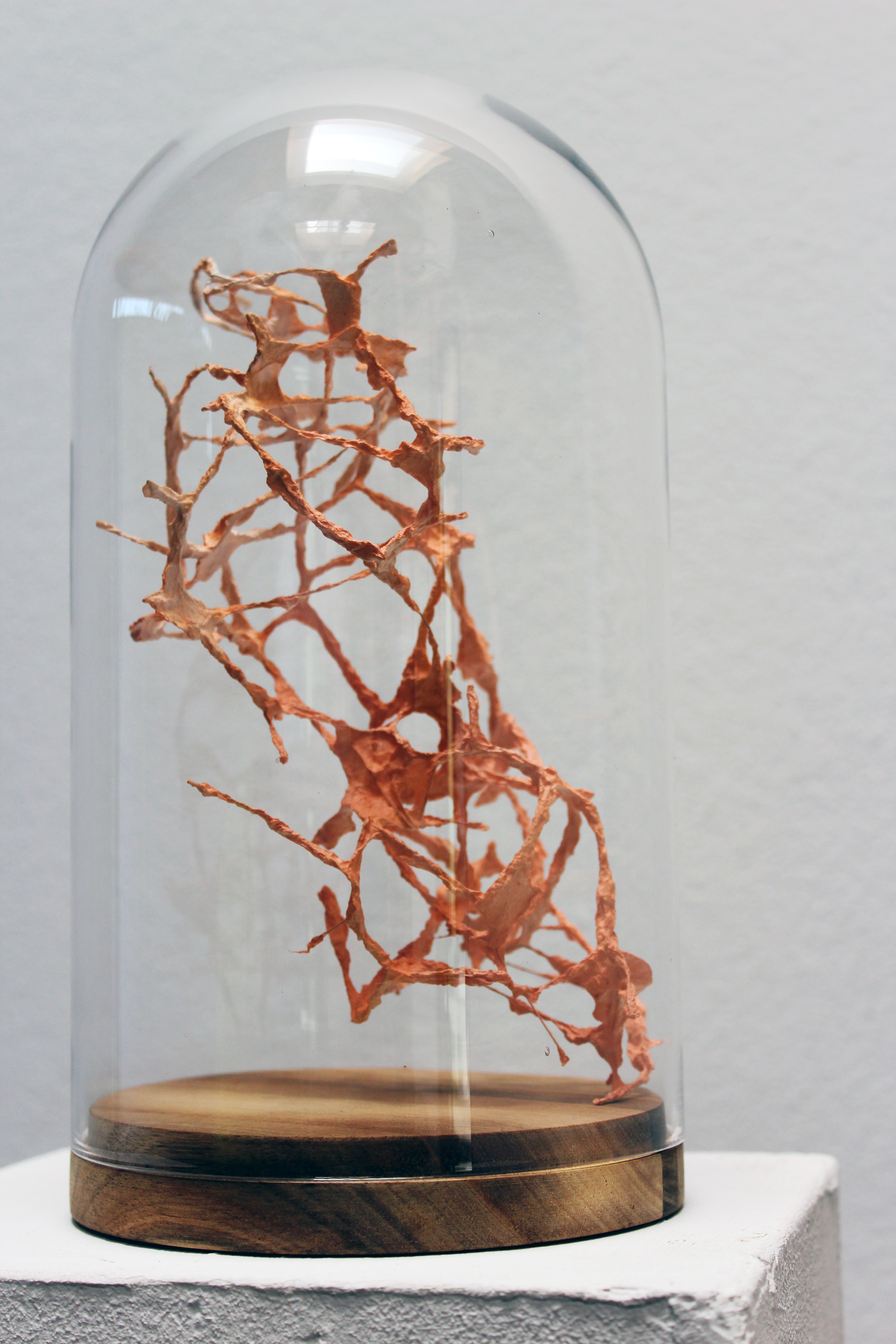 Pflanzlicher Zellaufbau Objekte | Zinkdraht Papier Farbe Glaskuppel | 2017 | 15 cm x 25 cm