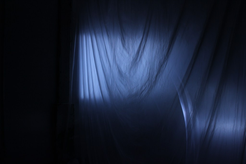 Ohne Titel | Installation | Holz | Gips | Plexiglas | Drehteller | Projektor | Malerfolie